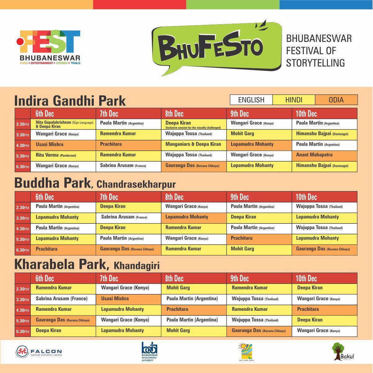 Bhubaneswar: Three parks in Odisha capital – Buddha Jayanti Park, Indira Gandhi Park and Kharavela Park – will reverberate with tales from far and near during the International Storytelling Festival – BhuFeSto, beginning Thursday.