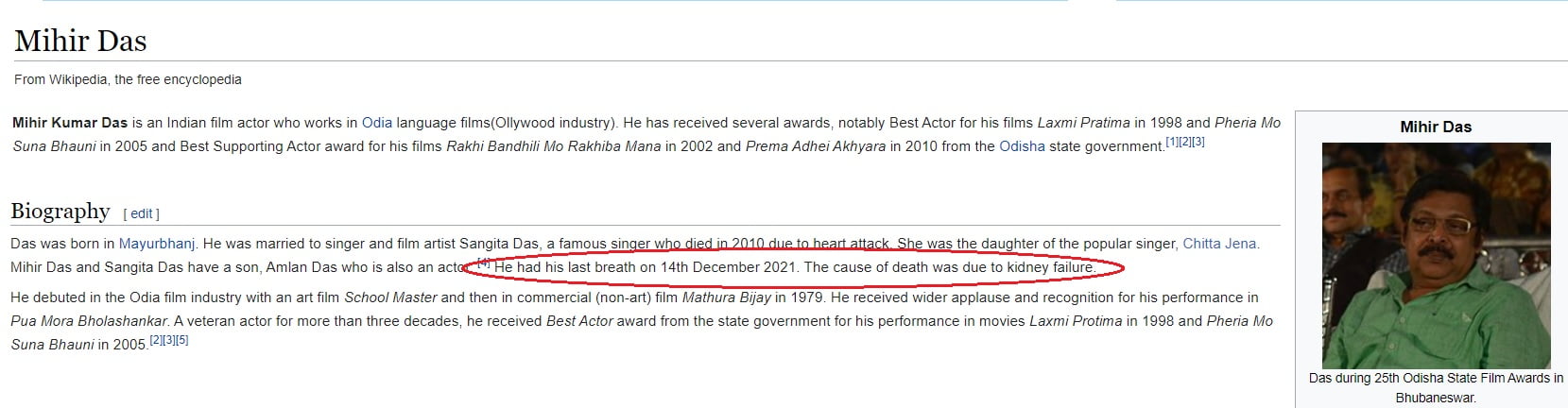 Sritam Das, general secretary of Odisha Cine Artistes Association, said that the actor’s family or the association should have been contacted before publishing such information. “The page does not even provide correct information about actors’ birthday,” he added.