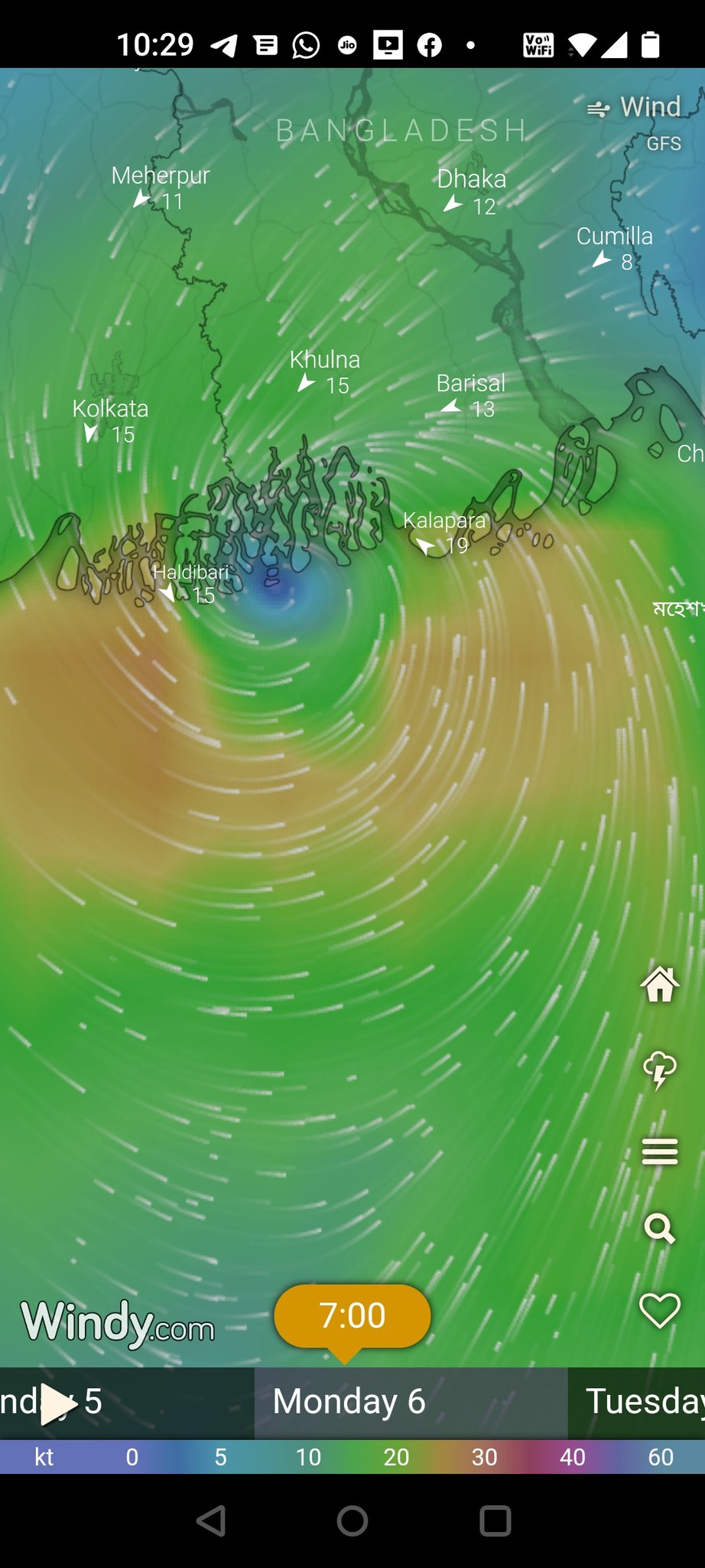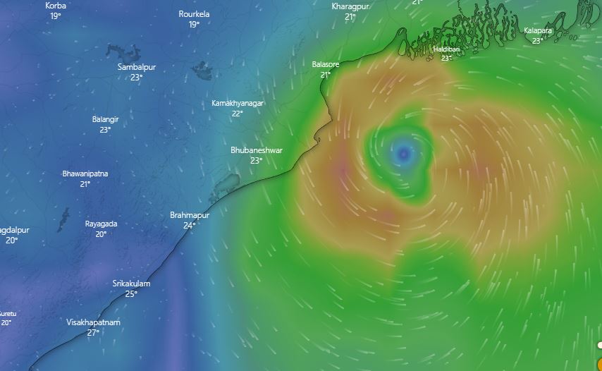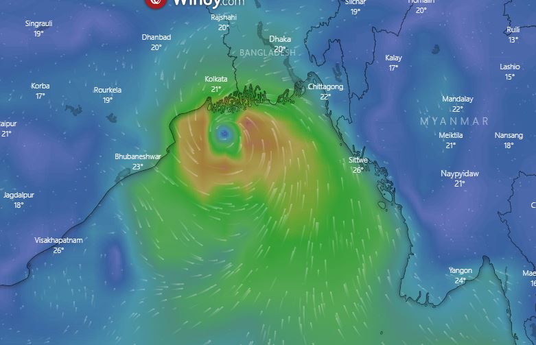 The Windy GFS model also shows the likely landfall between Balasore and Kolkata.