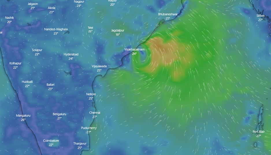 According to the IMD-GFS model, the cyclone is likely to make landfall between Srikakulam district in Andhra Pradesh and Puri district in Odisha. The system will then curve along the Odisha coastline to move into West Bengal after the landfall.