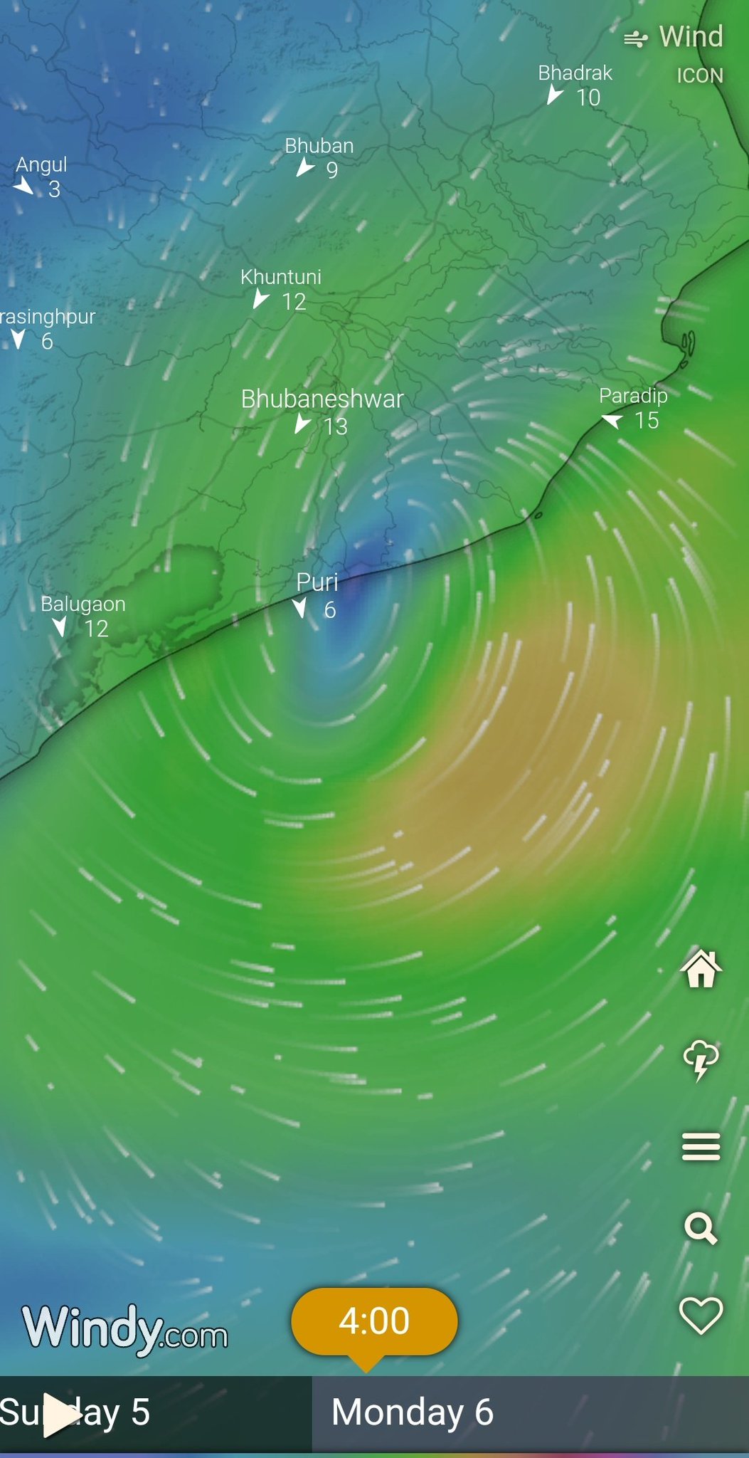 German Weather Service ICON (Icosahedral Nonhydrostatic) model shows that the cyclone will move close to the Odisha coast and make landfall near Puri.