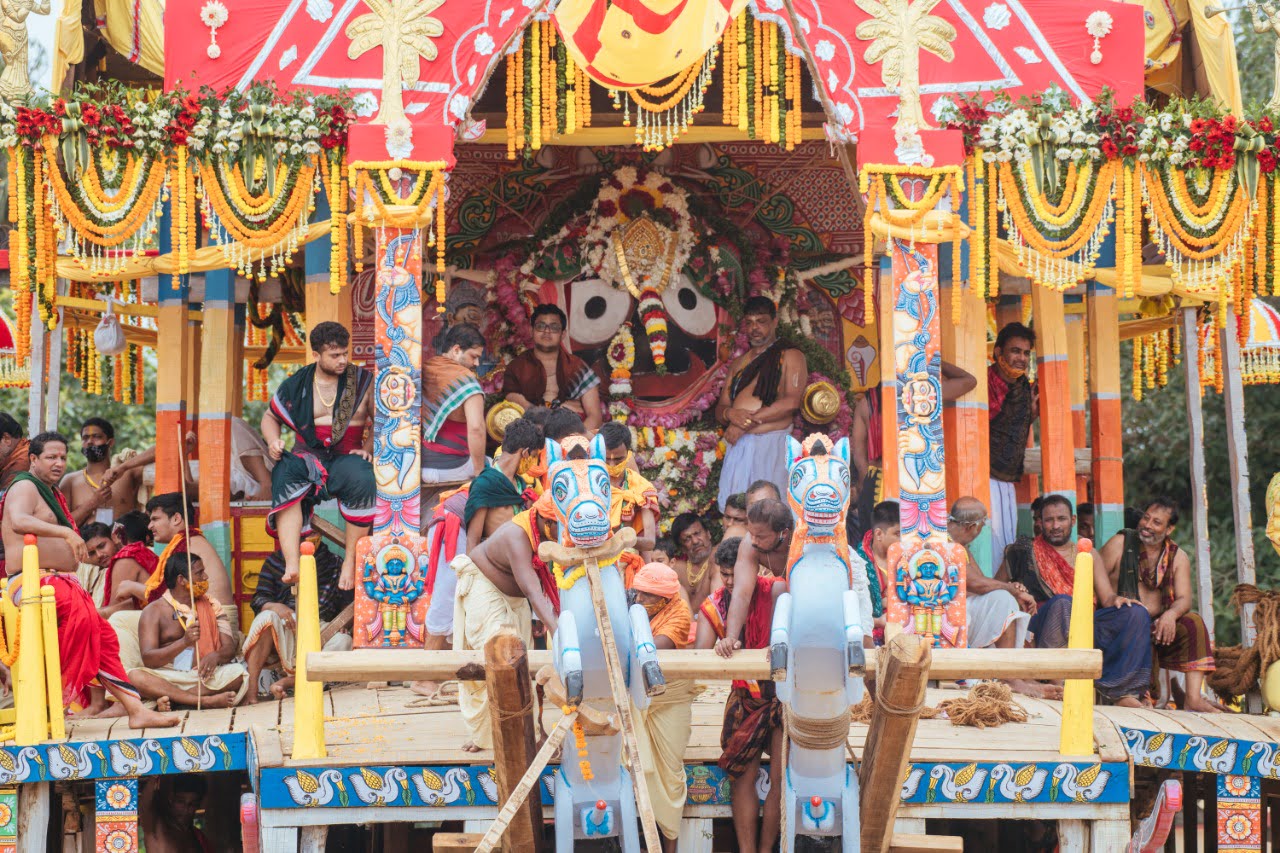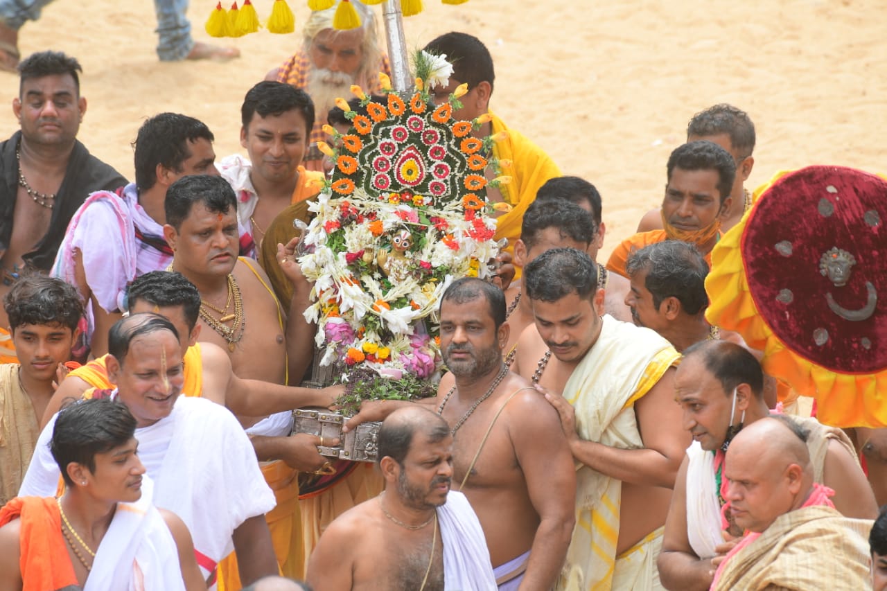 The Lords had been on a nine-day annual sojourn at Gundicha Temple, the place of their birth. The temple was decked up with flowers to bid adieu to the sibling deities.