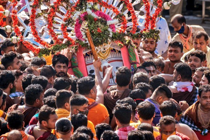 Like the previous year, Bahuda Yatra of the Lord is being held with public participation and by following the COVID protocol.