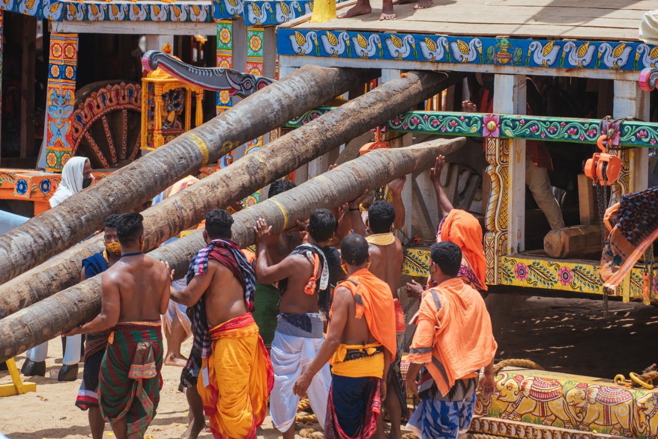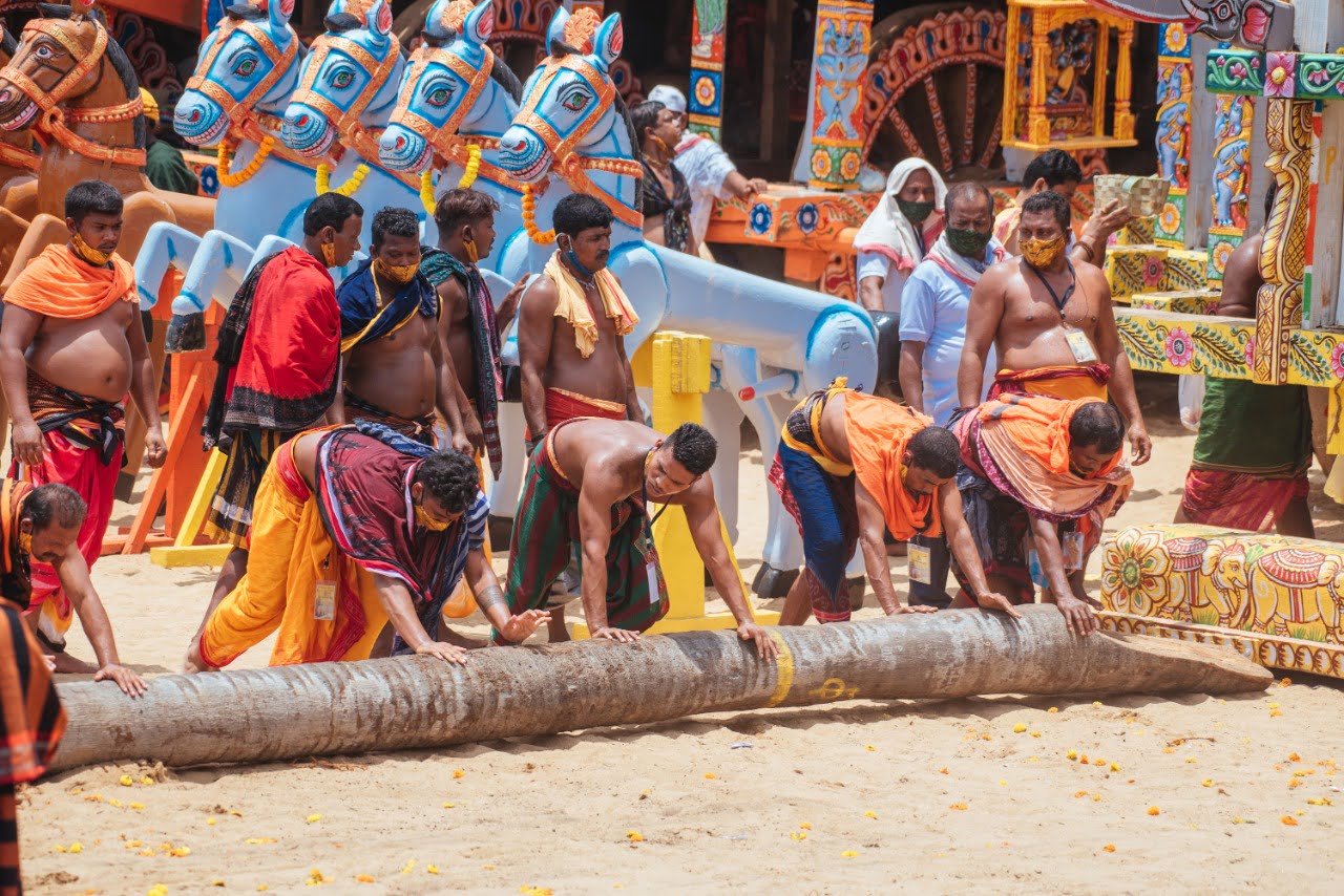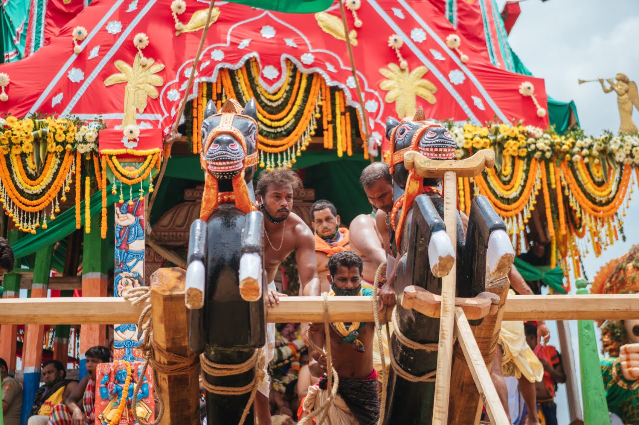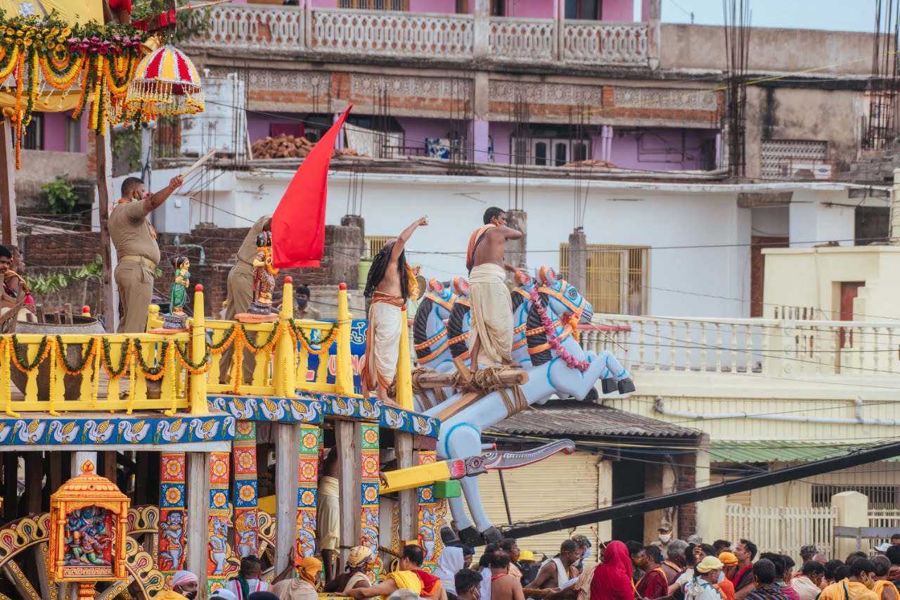 After the removal of Charamala, ‘Ghodas’ are being mounted on the chariots.