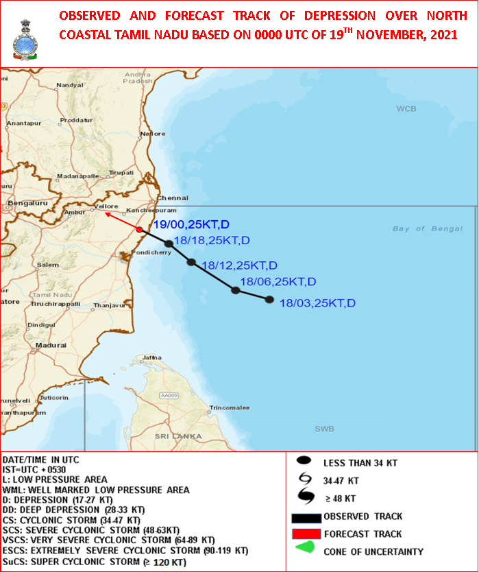 Bhubaneswar: The depression over southwest Bay of Bengal moved north-westwards and crossed north Tamil Nadu and adjoining south Andhra Pradesh coasts between Puducherry and Chennai around 3 am to 4 am on Friday.