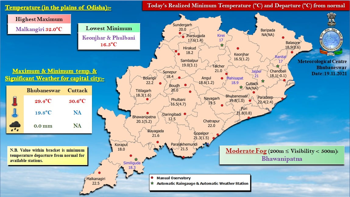 During the next 24 hours, light to moderate rain or thundershower is very likely to occur at a few places in Malkangiri, Koraput, Rayagada, Gajapati and at one or two places in South Odisha, it added.