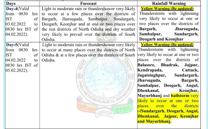Some of the north Odisha districts are likely to experience similar weather conditions on February 4, it added.